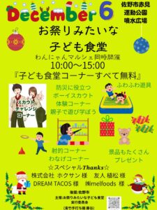 - 2025年12月03日 12月6日土曜日のお祭りみたいな子ども食堂、ならびに、大好き…